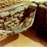 .... We're starting to get settled a bit here although things are still messed up. There is still a lot of mud from the last rain because we haven't built yet. Going to the bathroom is still a major undertaking - especially at night - because we only have one now, and it's about 100 yards away. I sure will be glad to get some electricity, but no telling when that will be. I think that if I do go on R&R, I'll just lie in a hot bath for a couple of days. All we have here is cold water, and it's pretty hard to get really clean. There is a better PX here...