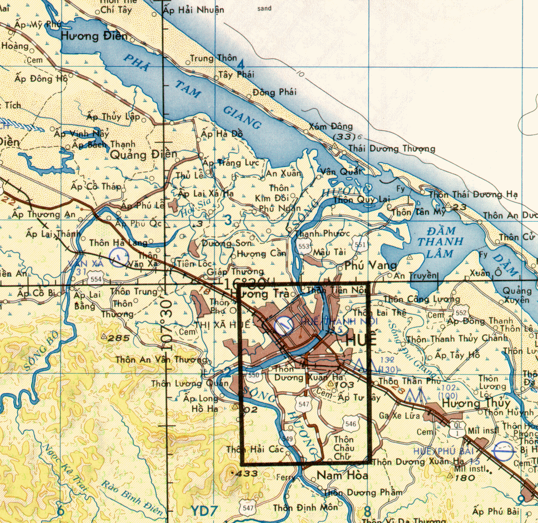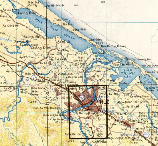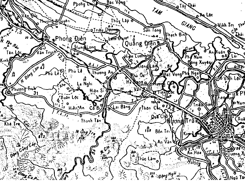Map #2 Close up of Hue Area, b/w, old map.