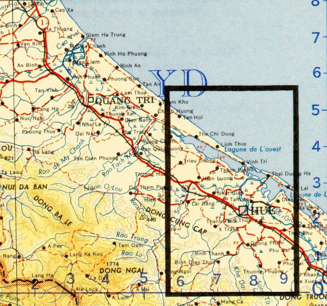 Map #5 Color, 1:1,000,000 scale map of area of Thua Thien and Quang Tri Provinces. File size is 651K bytes